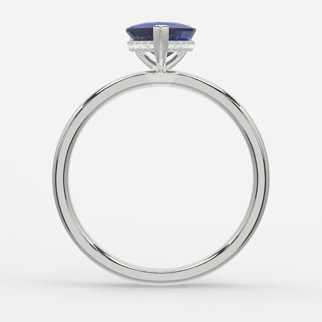 Phía dưới viên đá, bệ đỡ được ẩn giấu hàng kim cương tấm dạng vòng tròn (Hidden Halo), tạo nên ánh sáng phản chiếu tinh tế, như hào quang lặng lẽ bao bọc lấy viên chủ. Chính sự “ẩn” này khiến vẻ đẹp của nhẫn cầu hôn Coeur Bleu trở nên cuốn hút hơn, không phô trương mà đầy sự sâu lắng, tựa như tình yêu chân thành chỉ cần cảm nhận, không cần lời nói.