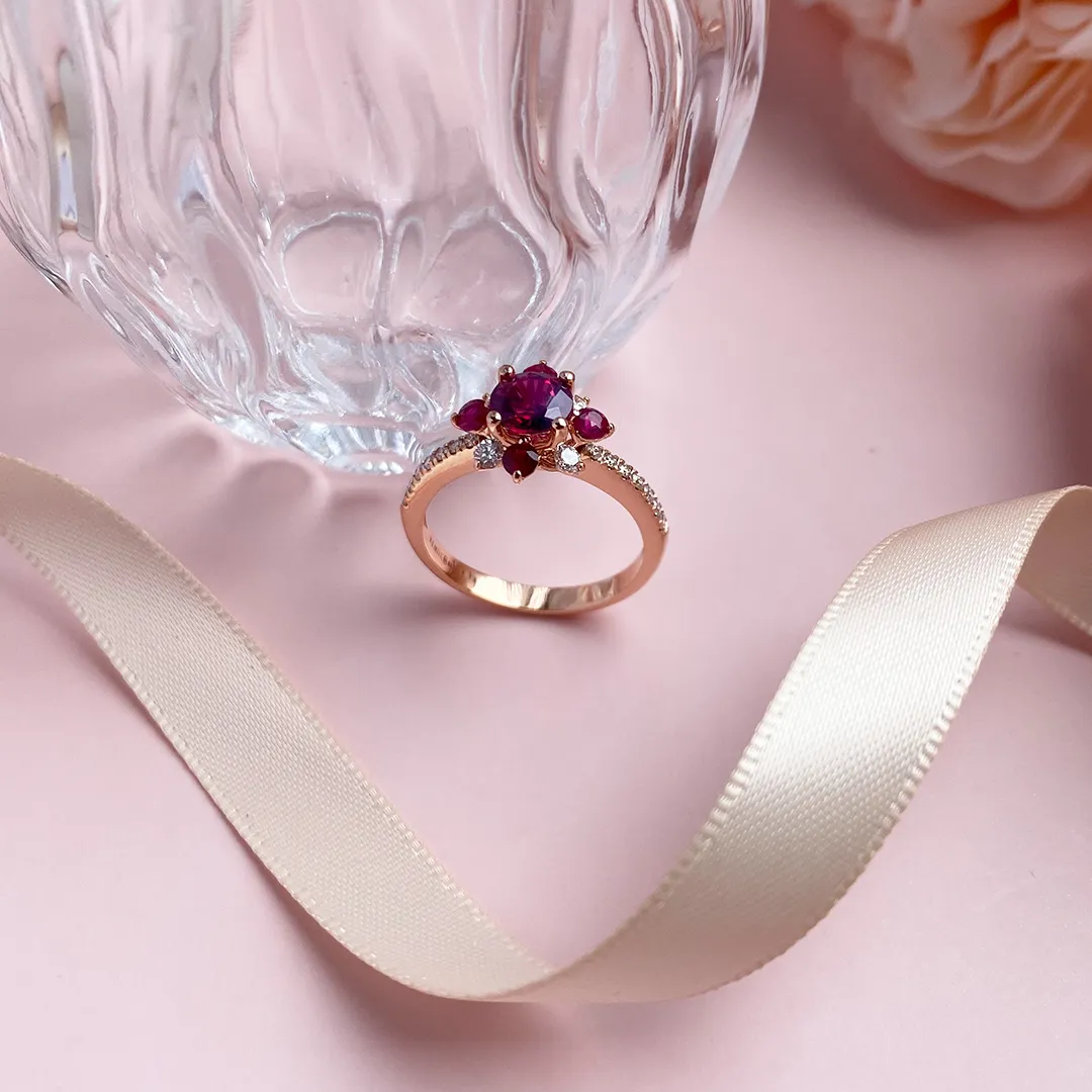 Hoa cúc nhỏ “Little Daisy” trong ngôn ngữ của loài hoa là biểu tượng của sự thuần khiết, trung thành và tình yêu vĩnh cửu. Khi kết hợp cùng sắc Ruby đỏ, viên đá tượng trưng cho đam mê, sức sống và tình yêu cháy bỏng, chiếc nhẫn trở thành một biểu tượng của tình yêu cân bằng giữa dịu dàng và mãnh liệt.