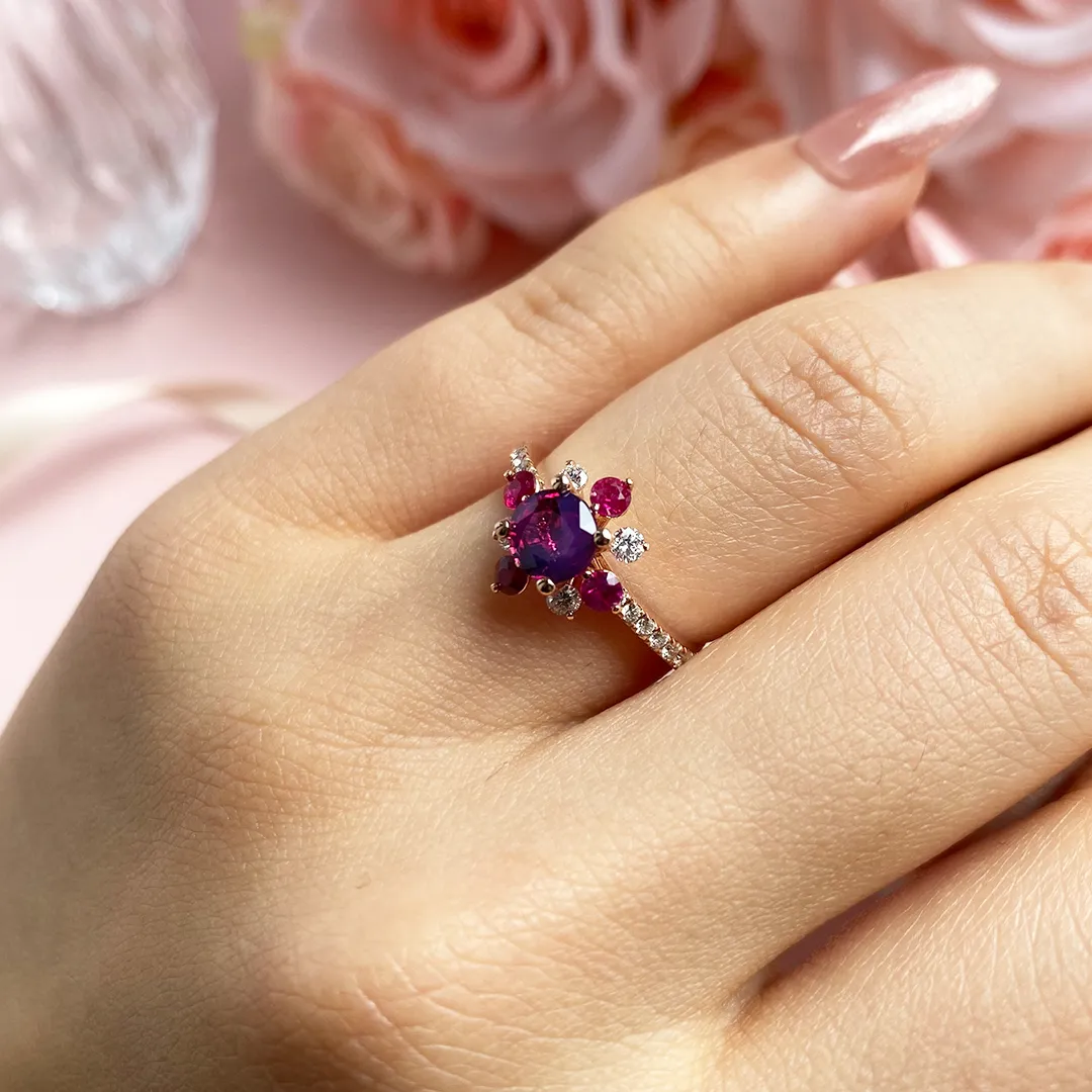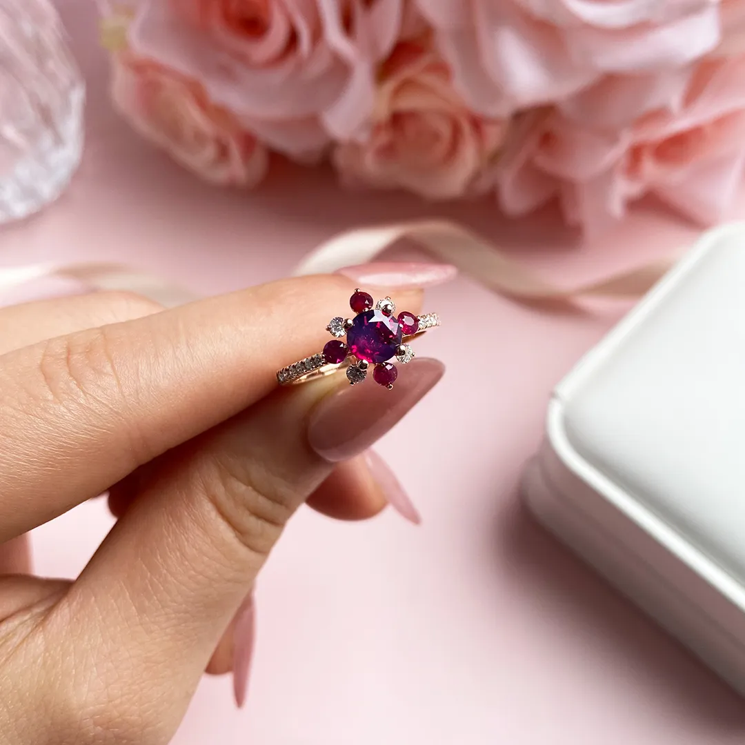 Nhẫn cầu hôn Little Daisy Flower không chỉ là món trang sức để ngắm nhìn, mà còn là lời thì thầm của trái tim. Mỗi viên đá Ruby nhỏ xung quanh như những khoảnh khắc ngọt ngào của hai người, từng kỷ niệm, từng cái nắm tay, từng ánh mắt trao nhau đều được lưu giữ lại trong một đóa hoa nhỏ mang tên “Daisy”.