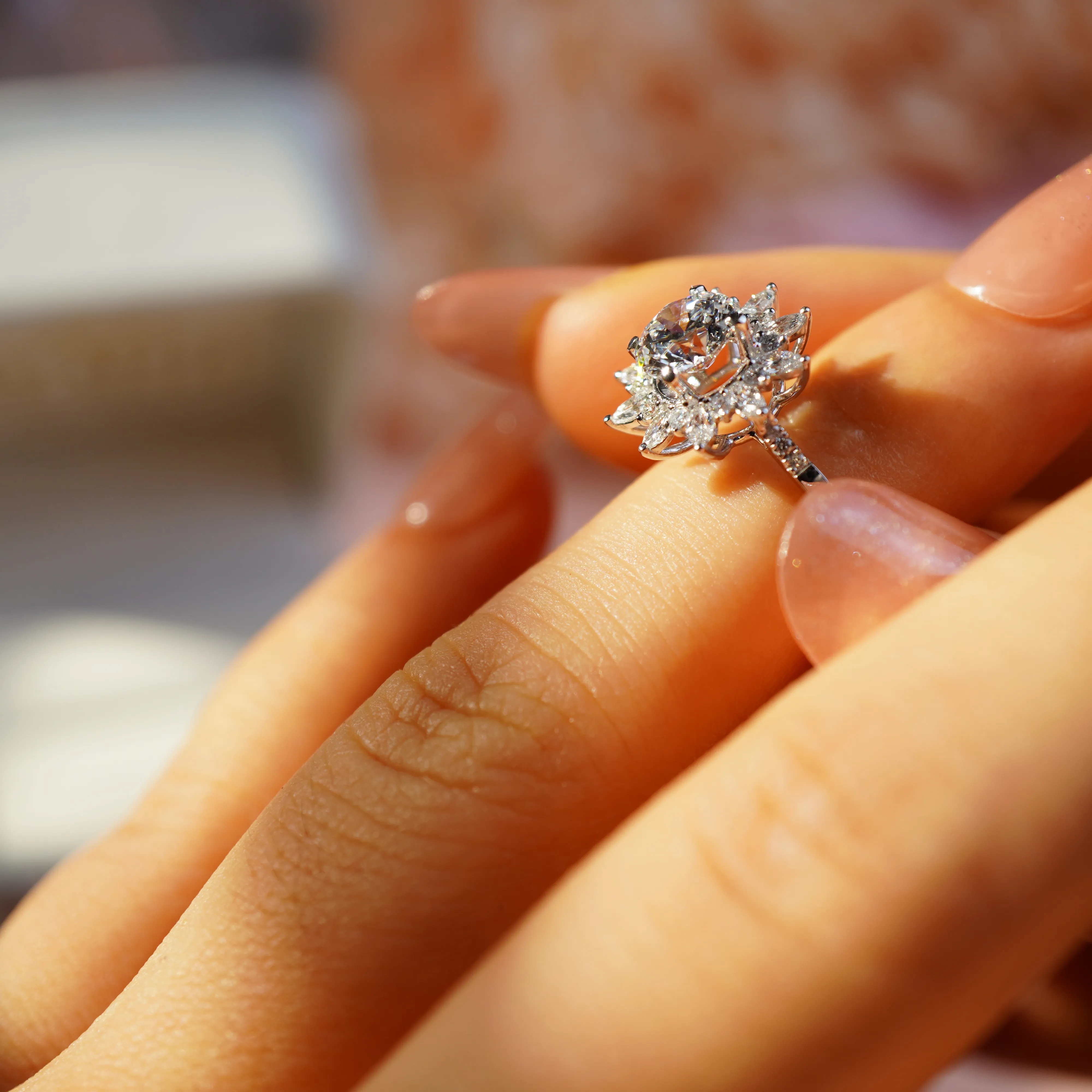 Thiết kế từng chiếc chấu nhỏ xinh của chiếc nhẫn cầu hôn Sunlit Bloom được Bemiie chế tác tỉ mỉ và cẩn thận, giúp giữ chắc từng viên đá theo thời gian. Tổng thể thiết kế tạo nên một bông hoa tỏa sáng trọn vẹn, nhưng vẫn giữ được nét mềm mại, nữ tính và sự vẹn nguyên của tâm hồn của loài hoa tựa như cách tình yêu đích thực vừa mạnh mẽ, vừa dịu dàng và cũng thật chân thành.