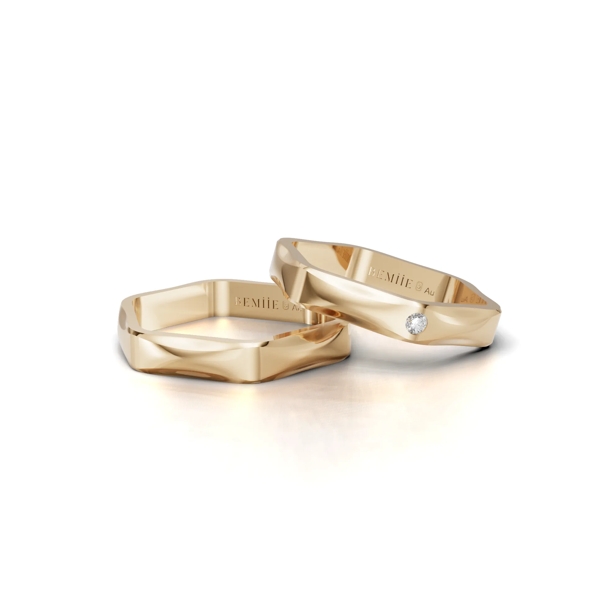 Cặp nhẫn cưới Hexa Amour được chế tác từ vàng chất lượng cao, đường nét gia công sắc nét, một minh chứng cho tay nghề của đội ngũ thợ lành nghề tại Bemiie Jewelry. Từng góc cạnh đều được đánh bóng trơn, nhẵn để khi đeo lên tay người dùng cảm nhận sự thoải mái, nhẹ nhàng và an tâm về độ bền theo năm tháng.